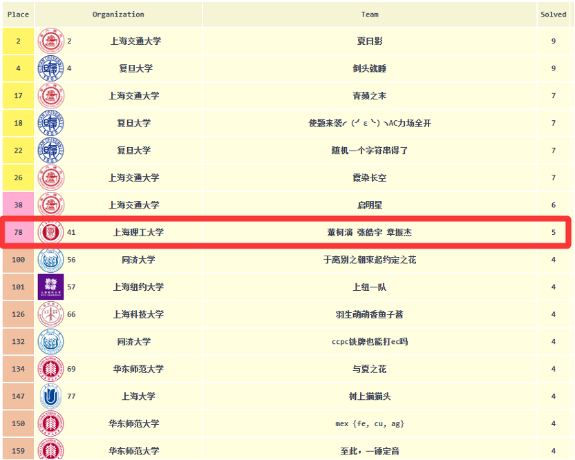 图1 ICPC亚洲区总决赛上海市高校最终排名,我校位于上海市高校第三